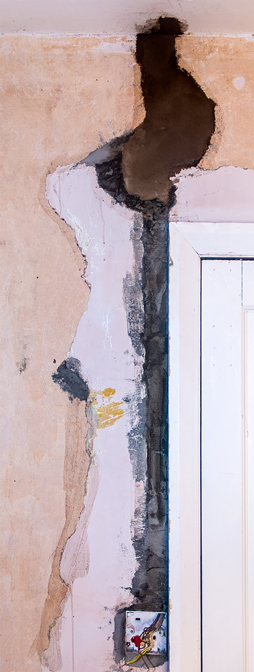 This was a nightmare to do, not only was it quite deep, there is also the fact that it cut into the door frame, so I ended up using a lot of cement to fill in the deep chase, and also make sure it was flush with the door frame and there was no gap between the surface of the cement and the back edge of the door frame.