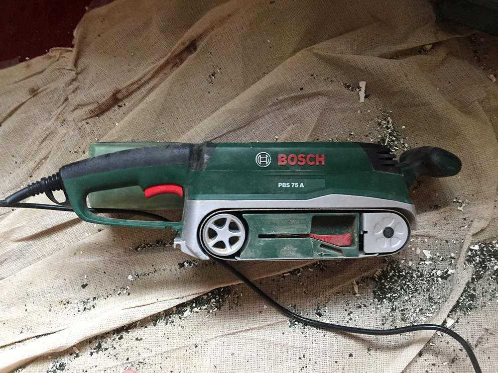 Having taken nearly two days to sand down the door, I asked if I would be allowed to purchase a belt sander, and the financial controller said of course, why didn't you get one when you started, ahh well, you live and learn, so I was allowed to buy one of these. Now of course it was too late to use it on the door, but I used it on the door frame, and within an hour I had got to the point where I could re-hang the door.